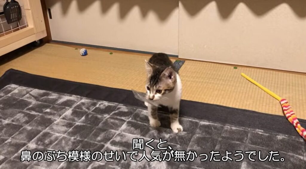 当時生後4ヶ月のマサは、あの鼻の模様が「個性的すぎる」と敬遠されたのか、イベント終了間際になっても引き取り手が現れない状態でした。