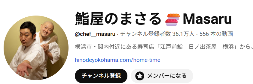 横浜・関内エリアで営業する寿司店「江戸前鮨 日ノ出茶屋 横浜」の大将・筑丸勝(ちくまる まさる)さんが運営している、れっきとした公式チャンネルです。