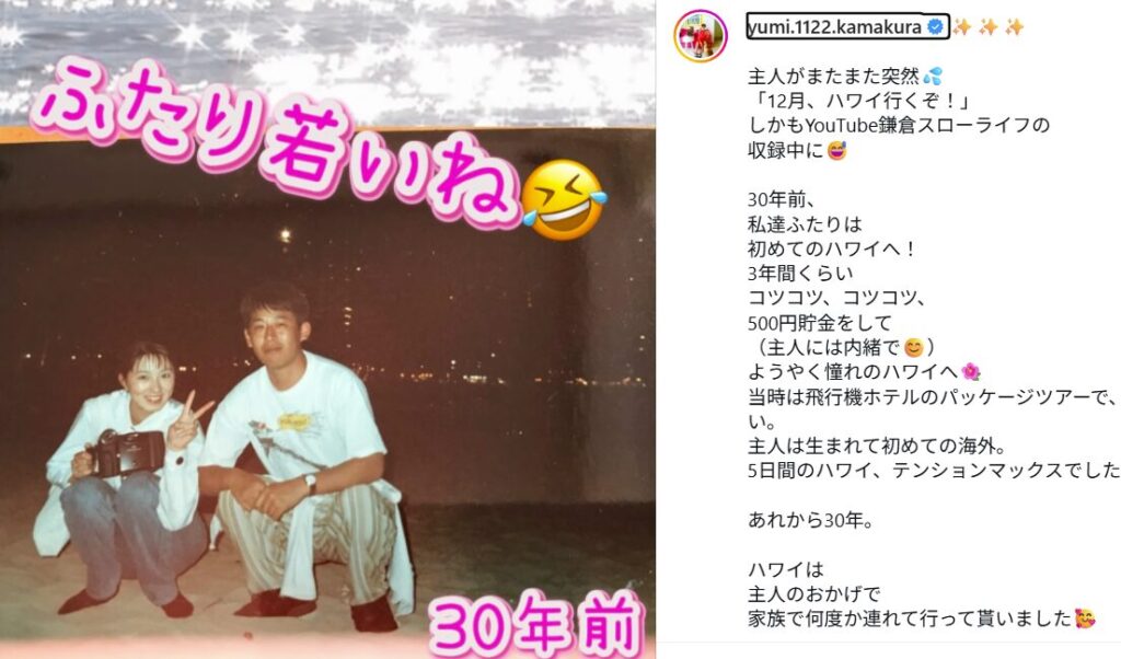 現在は夫であるたろたんパパと共にYouTube チャンネル「鎌倉スローライフ」を運営されており、ご自身のInstagramアカウント(@yumi.1122.kamakura)には7.5万人以上のフォロワーが集まっています。