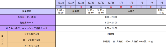 ただし郵便局のATMは、年末年始に時間が変わることがあります。