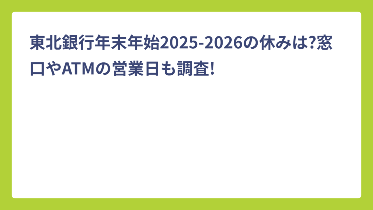 さて、ここまで東北銀行の2025-2026年末年始の情報をがっつり見てきました。